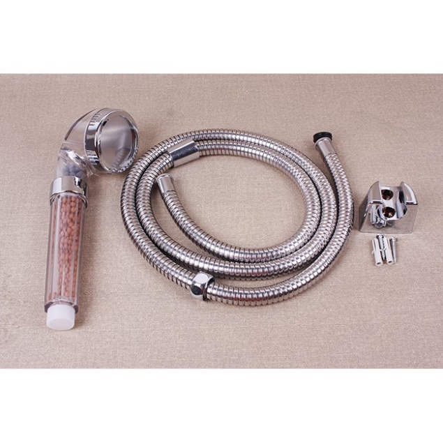 – Bộ sản phẩm gồm : 1 vòi hoa sen + 1 dây cấp nước Inox304 dài 1.5m chống xoắn + 1 giá đỡ vòi hoa sen