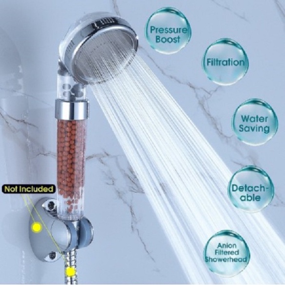Giới thiệu Bộ vòi hoa sen tăng áp Size To siêu bền công nghệ Nano lọc nước lọc khuẩn đủ bộ Tay sen+dây+gác cài tròn ABS - QM018