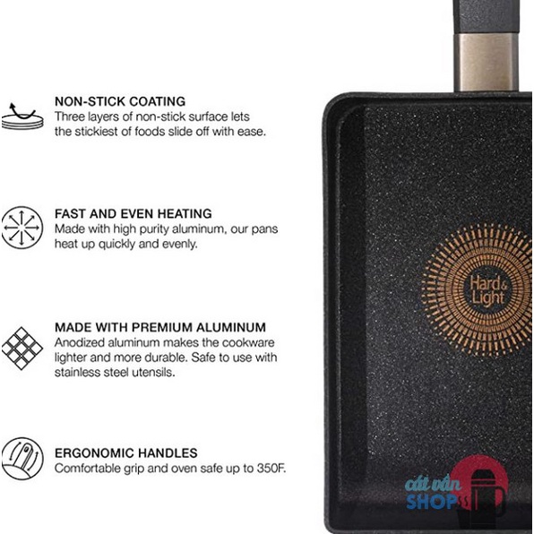 Giới thiệu [Có Video] Chảo nhôm chống dính Hard & Light Black chữ nhật 18cm LHL5186IH