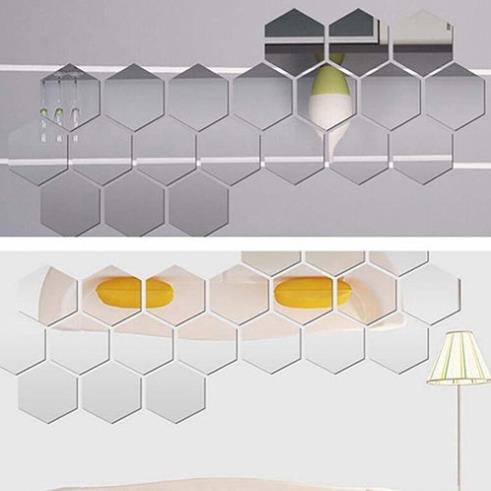 - Tên Sản Phẩm : Set 12 Miếng Gương Dán Tường 3D Trang Trí Hình Lục Giác