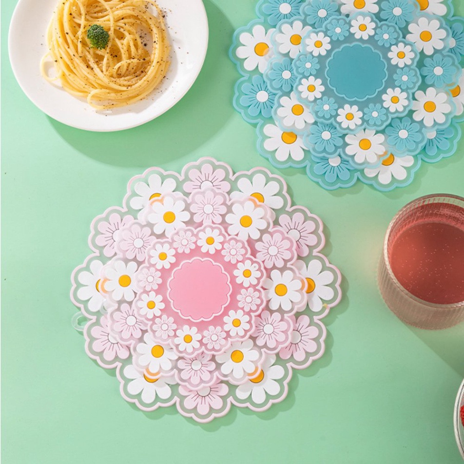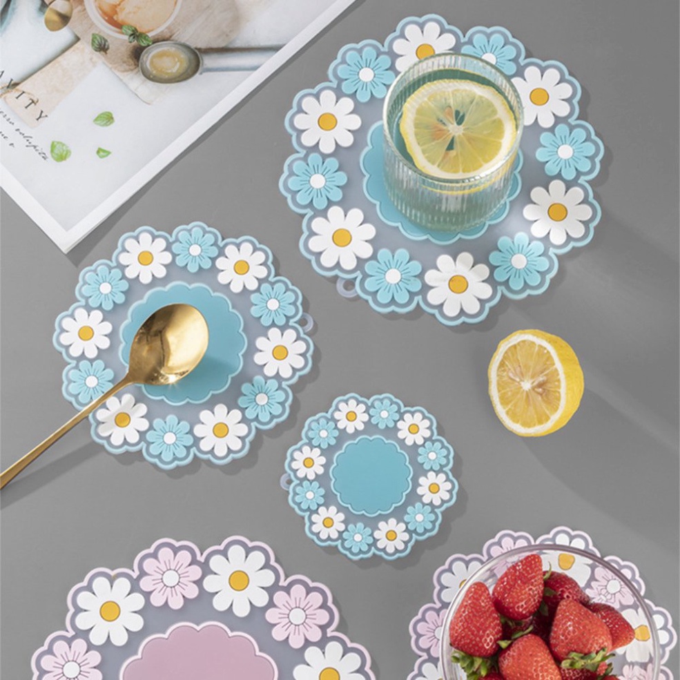 Nhà cửa & Đời sống > Bộ đồ bàn ăn > Khay, tấm lót bàn ăn || [VIDEO] COMBO 3 miếng lót đồ nóng silicon hình hoa cúc siêu xinhCòn hàng