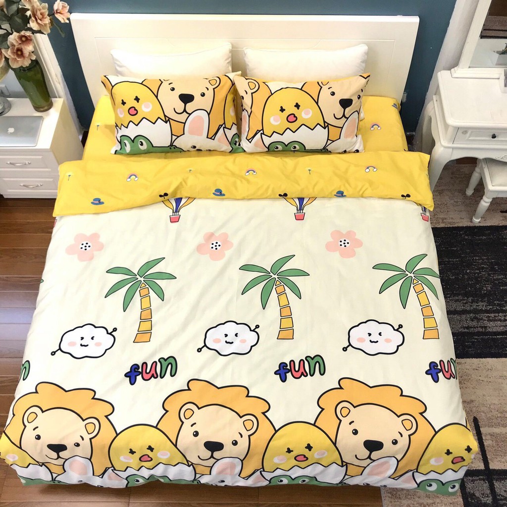 cotton 100%, ko nóng bí, dùng đc 4 mùa, mẫu mã đẹp, chất vải mịn, ko xù lông, màn chống thấm siêu bền,