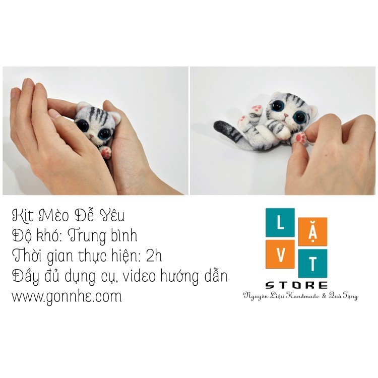 Sở thích & Sưu tầm > Dụng Cụ May Vá || [Có Video Hướng Dẫn] Bộ Len Chọc Làm Mèo Xám Đòi Ẵm- Needle Felting Cat - Handmade, diysCòn hàng
