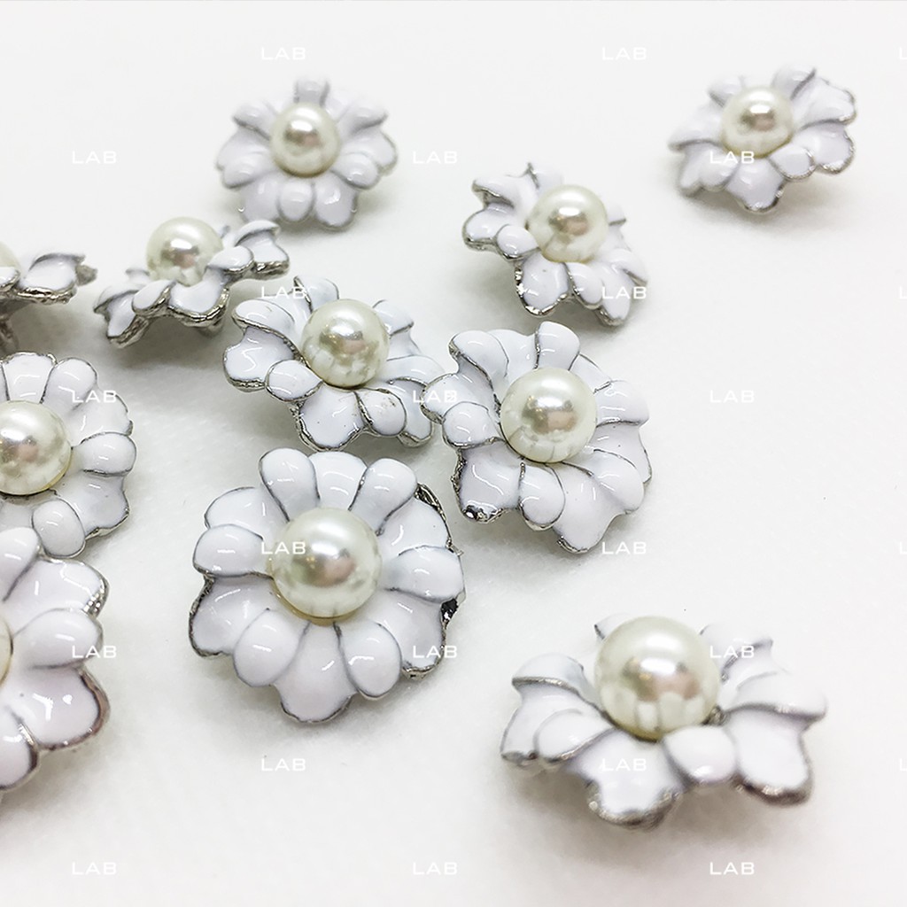 Sở thích & Sưu tầm > Dụng Cụ May Vá || (video) Khuy ngọc mai trắng đế kim loại 20mm (bông)Còn hàng