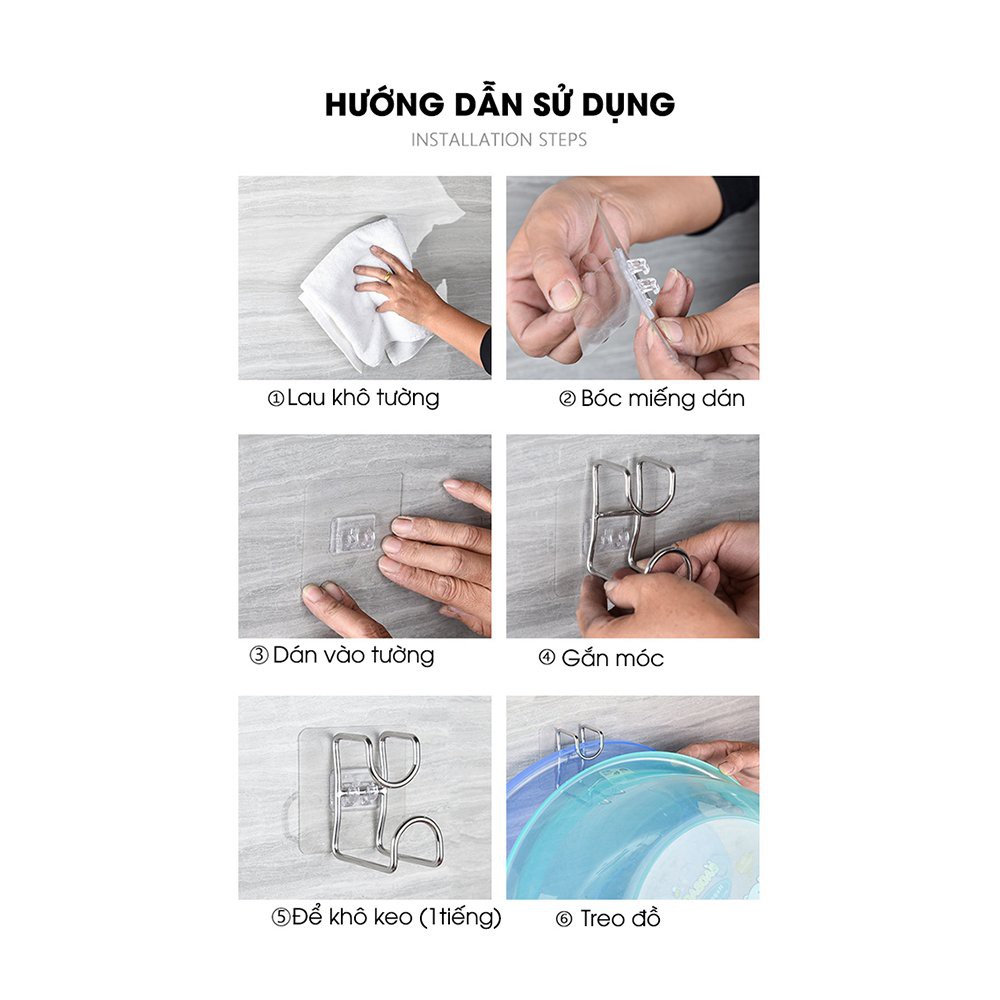 - Móc dán tường tiện dụng bền, chịu nước, không bong tróc.