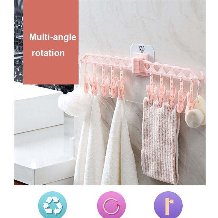 ĐẶC ĐIỂM SẢN PHẨM-Móc treo tất, quần áo - 10 kẹp đa năng làm từ chất liệu an toàn với 12 chiếc móc đi kèm cho phép phơi những loại đồ nhỏ và nhanh khô.