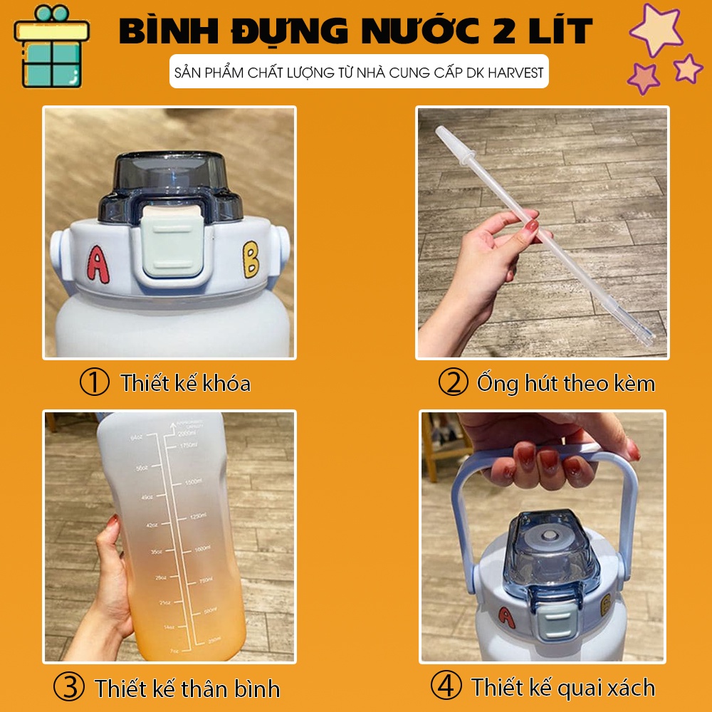 Bình Nước 2 LÍT cute DK HARVEST có vạch báo uống nướcBình nước 2 lít dùng cho dân văn phòng siêu dễ thương đồng thời có chia vạch dành cho người lười uống nước.