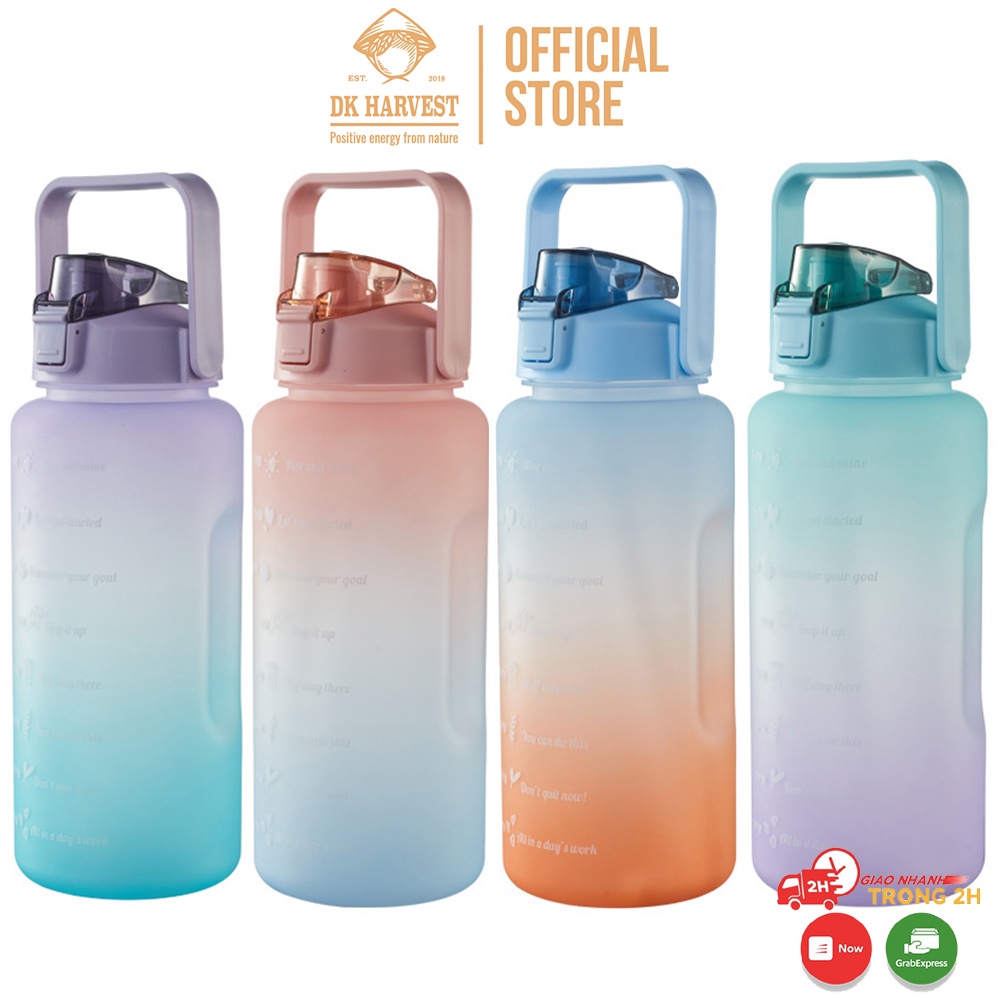 (Video Review) Bình Đựng Nước 2L DK Harvest Có Vạch Báo Giờ Uống Nước Cute