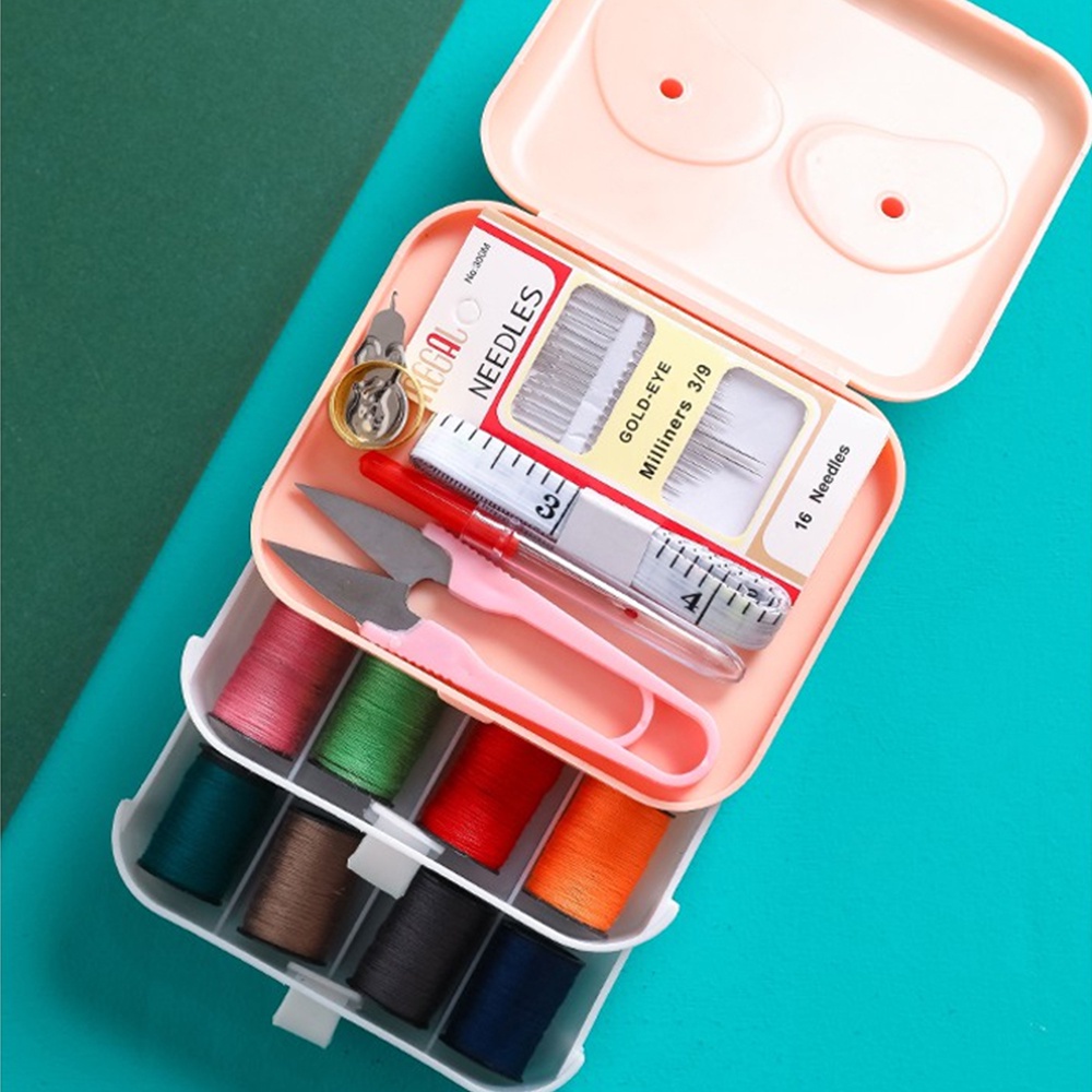 ĐẶC ĐIỂM NỔI BẬT♘ Sản phẩm bao gồm: hộp đựng, thước dây, kéo,16 cuộn chỉ, kim, dụng cụ xỏ kim và dụng cụ bảo vệ ngón tay