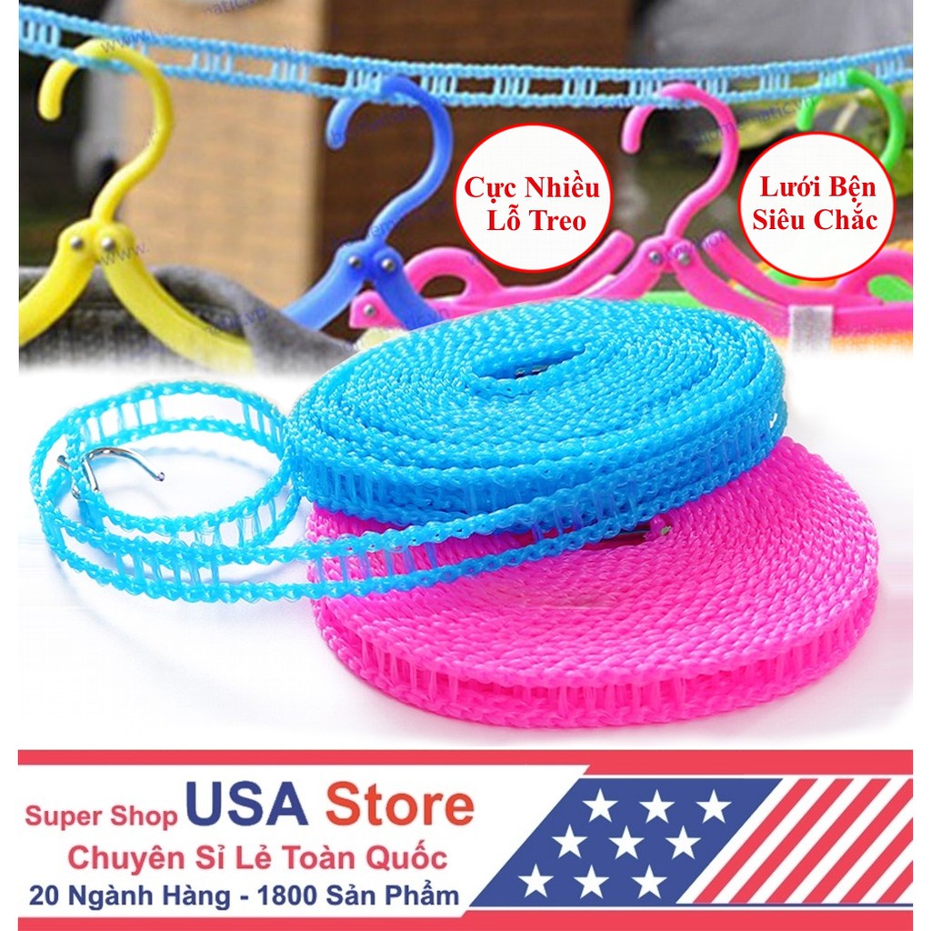♘ Sợi Cước Bện Siêu Chắc, Có Nhiều Lỗ Móc Chống Bay, Trượt có chất liệu nhựa mềm bền chắc, dây phơi cực kỳ bền chắc và dẻo dai, có thể chịu được mọi loại thời tiết, không thấm nước, không dẫn điện, rất an toàn và bền.