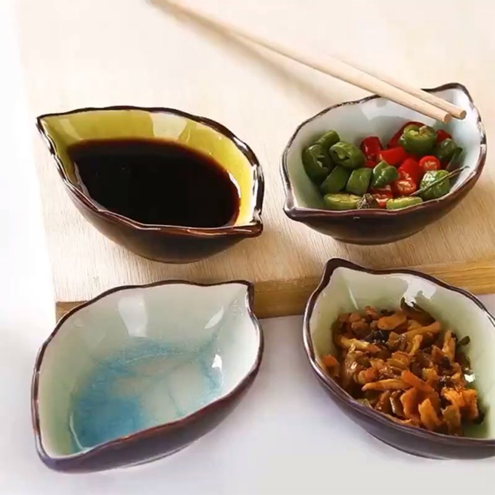 (Video Review) Đĩa Khay Đựng Gia Vị Sứ 1 Ngăn HÌNH CHIẾC LÁ - Chén Bát Nhỏ Đựng Nước Mắm, Nước Chấm, Xì Dầu Để Bàn Ăn