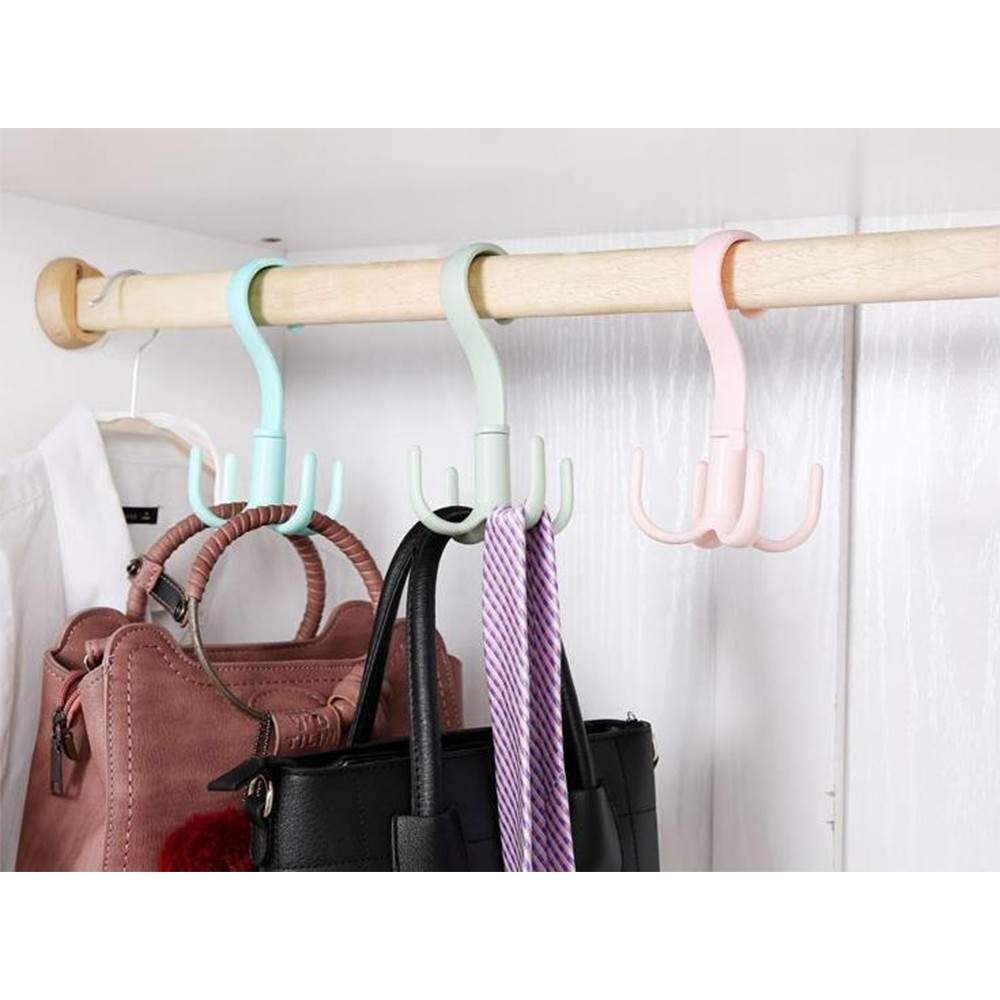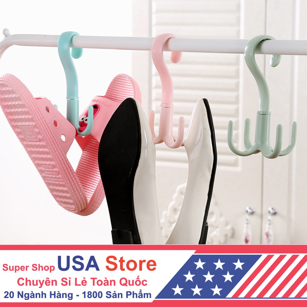 (Video Review) Móc Nhựa Treo Đồ 4 CHẤU XOAY 360 ĐỘ - Hình Móc Câu T5 Treo Phơi Giày Dép, Túi Xách, Dây Lưng Chịu Lực Tốt