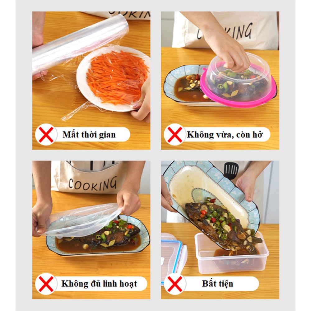 (Video Review) Set 100 Màng Bọc Thực Phẩm TÚI GẤU, Màng Bọc Thực Phẩm PE Có Chun Bọc Đồ Ăn Co Giãn Tái Sử Dụng Nhiều Lần