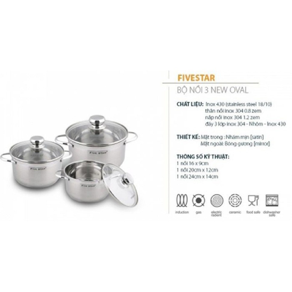 >>CÁM ƠN QUÝ KHÁCH ĐÃ GHÉ THĂM SHOP<<Bộ nồi inox 3 đáy fivestar new oval
