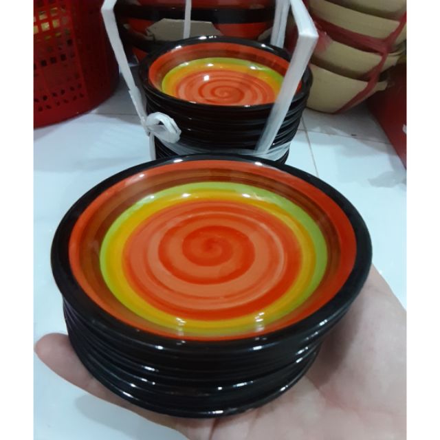 Mẫu mới về hàng. Shop chuyên hàng dễ vỡ. Sỉ lẻ số lượng tùy theo nhu cầu khách hàng.Đây là đĩa nhỏ chấm gia vị trang trí trên bàn tiệc. Đĩa có sắc màu đẹp. Dùng đựng nước chấm các món ăn.