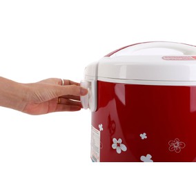 ☑ Nồi cơm nắp gài Sunhouse SHD 8601 có màu đỏ tươi sáng với hoa văn đáng yêu, làm nổi bật gian bếp gia đình. Sản phẩm được tặng kèm muỗng xúc cơm, cốc đong gạo, và xửng hấp.