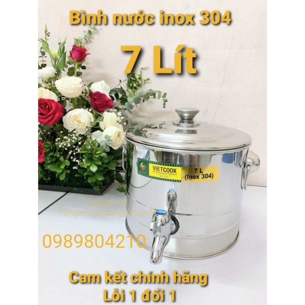 (Có Video SP)Bình đựng nước inox 7 lít có vòi SUS 304 ,Bình nước inox 7 l,Bình nước inox có vòi inox 304, CHÍNH HÃNGVN