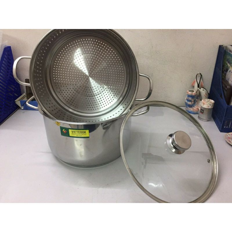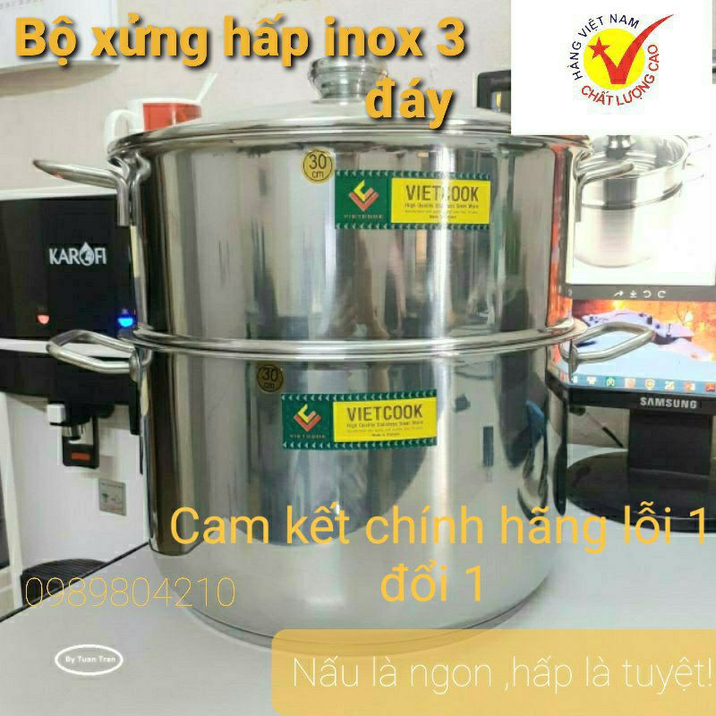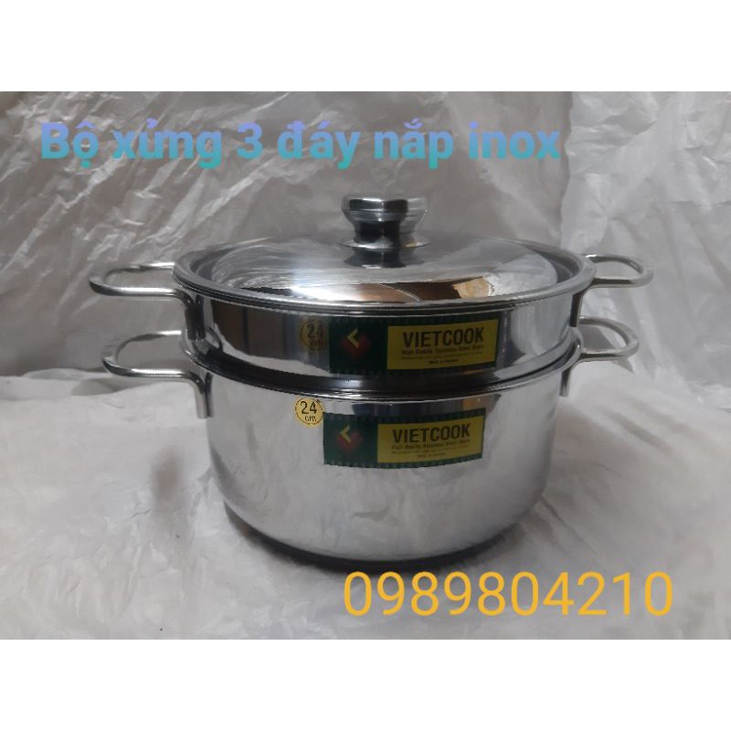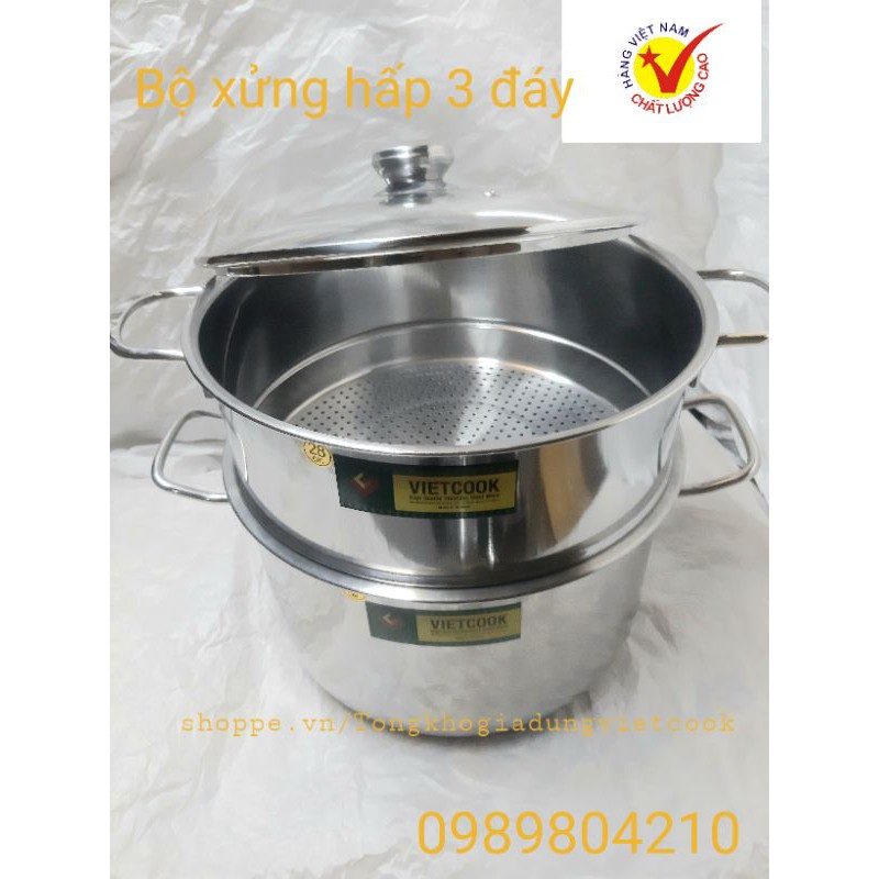 Nhà cửa & Đời sống > Dụng cụ nhà bếp > Nồi || (Video SP)Bộ nồi xửng hấp inox ,xửng hấp inox 2 tầng 3 đáy nắp kính,nắp inox VietCook đun bếp từ size 24,26,28,30,32Còn hàng