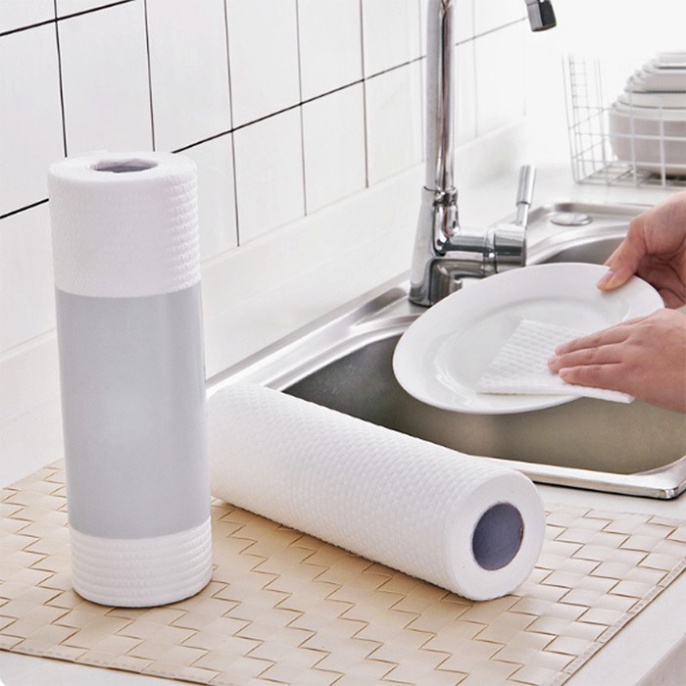 Nhà cửa & Đời sống > Dụng cụ chăm sóc nhà cửa > Khăn vệ sinh || [Video Thật] Khăn Lau nhà bếp Có Thể Dùng Lại - CUỘN KHĂN Lau Vải Không Dệt Đa Năng MÀU TRẮNG - 25Cmx25CmCòn hàng