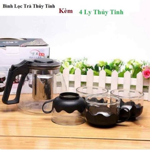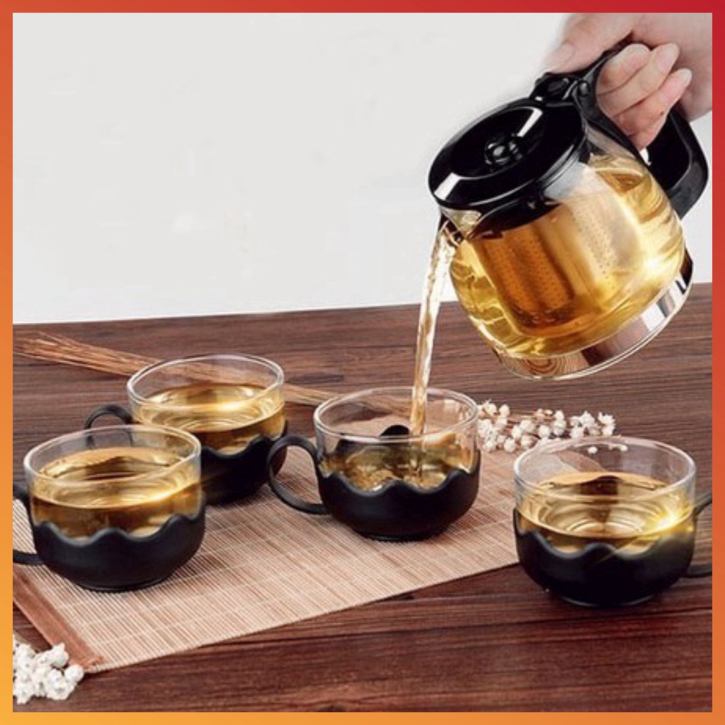 [VIDEO THẬT] Bộ ấm chén, bộ bình trà thuỷ tinh có túi lọc inox dung tích 500ml + kèm 4 ly thuỷ tinh