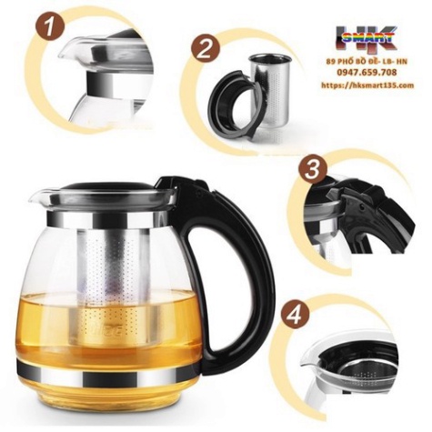 Bộ ấm chén, bộ bình trà thuỷ tinh có túi lọc inox dung tích 500ml + kèm 4 ly thuỷ tinh🔖 Thông số kỹ thuật: