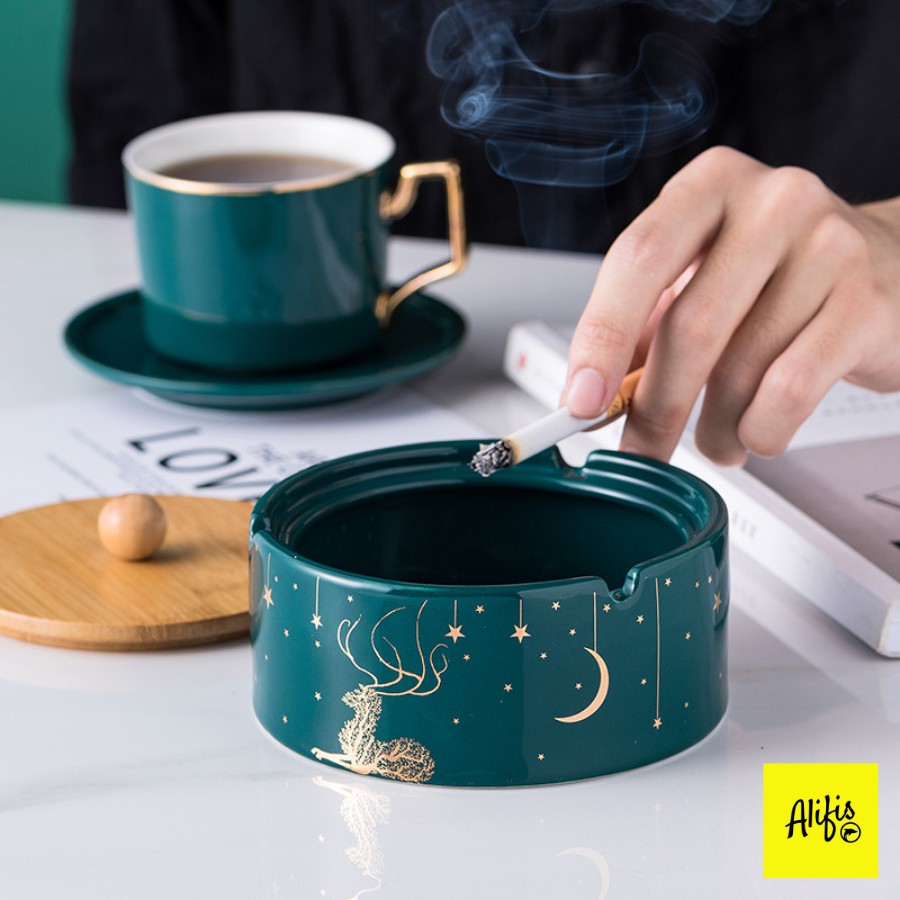 + Gạt tàn làm từ chất liệu bằng gốm sứ cao cấp nung ở nhiệt độ cao, kết hợp màu xanh cổ vịt sang trọng.