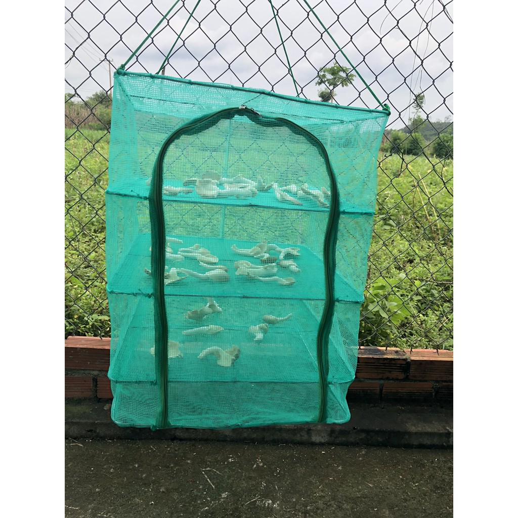 Lồng lưới treo 4 tầng để phơi cá khô có thể xếp gọnĐặc điểm: