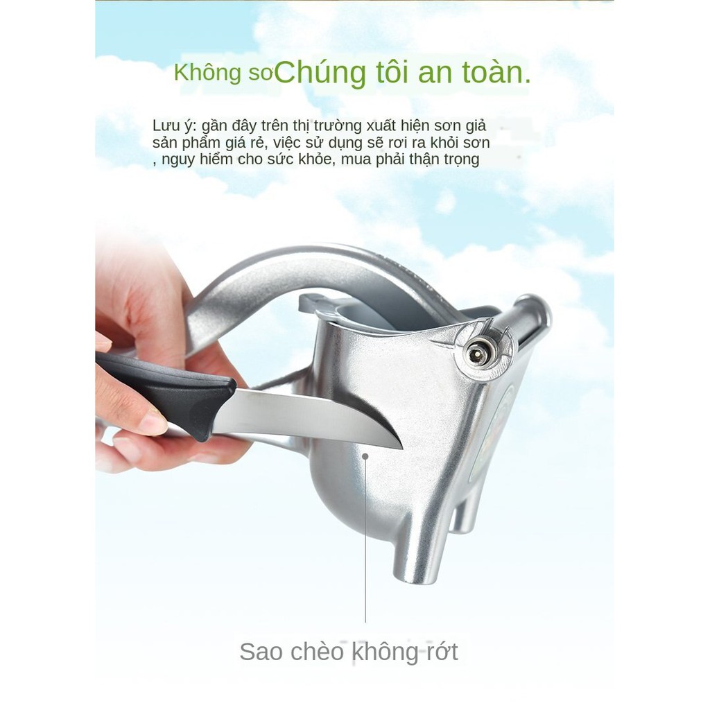 - An toàn khi sử dụng: Không sử dụng điện nên rất an toàn. Phần lồng ép tiếp xúc với trái cây được làm 100% từ inox nên rất an toàn vệ sinh thực phẩm. Phần thân máy được đúc bằng kim loại và sử dụng công nghệ mạ croom hoặc sơn tĩnh điện tiên tiến có độ bền rất cao nên quý khách có thể hoàn toàn yên tâm về độ bền khi sử dụng.