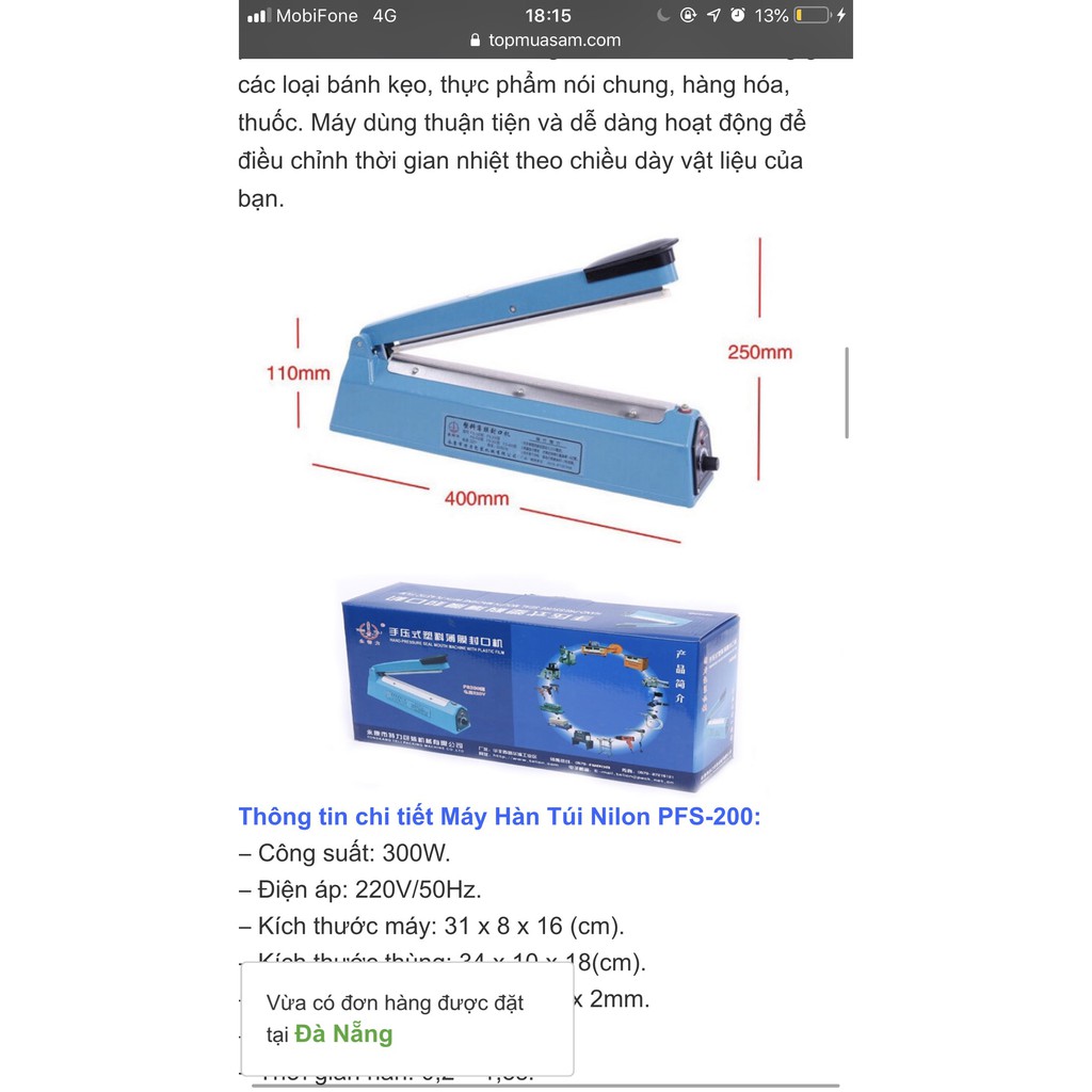 Giới thiệu [ VIDEO THẬT] MÁY HÀN MIỆNG TÚI NILONG DẬP TAY PFS 20cm-30cm-40cm + Tặng 1 Thanh Dây Hàn + Bảo Hành 1 Năm + LỖI 1 ĐỔI 1