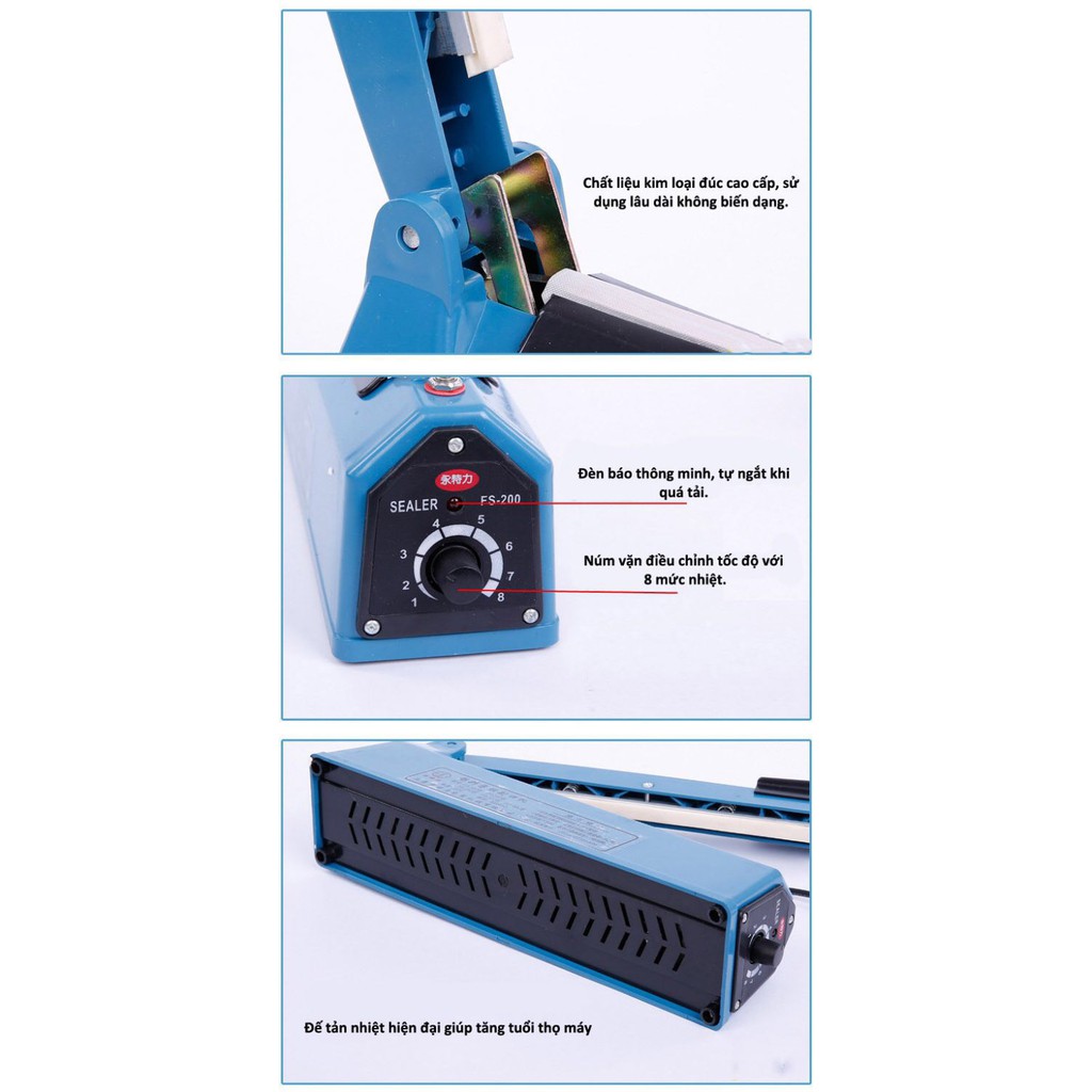 Thời gian hàn miệng túi rất nhanh 2s - 5s, tùy theo độ dày túi điều chỉnh tăng giảm nhiệt độ phù hợp