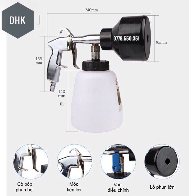 [VIDEO THẬT] Súng phun tạo bọt tuyết + bình 1 lít để rửa xe Đài loan dùng cho máy nén khí