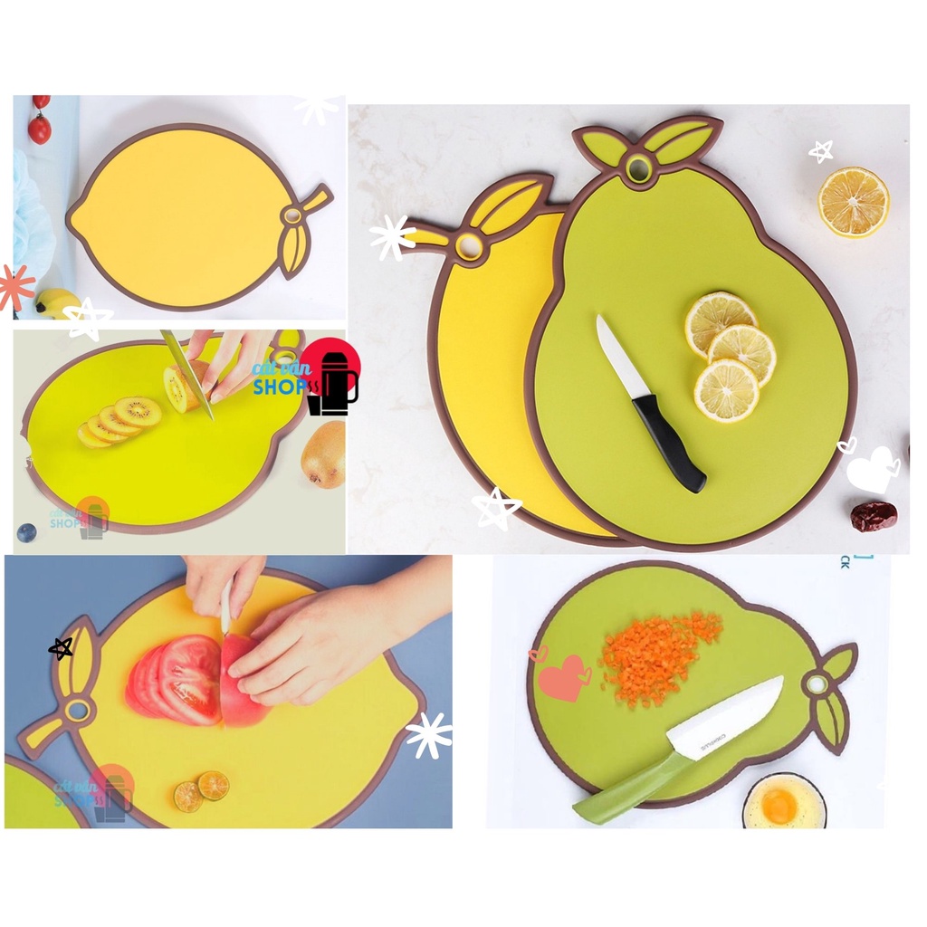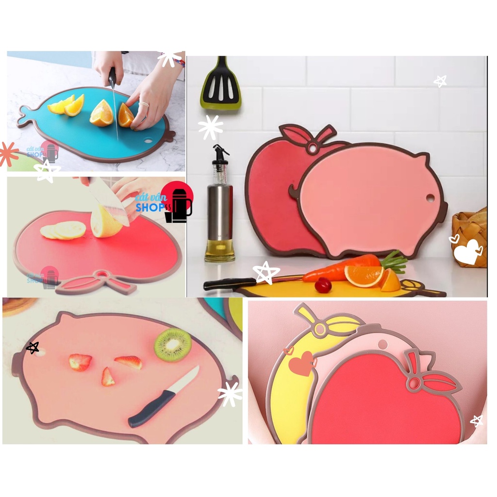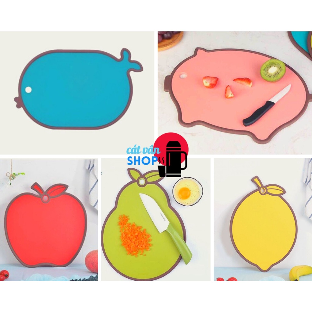 Chất liệu : nhựa PP kháng khuẩnThớt gồm nhiều mẫu : cá heo , trái lê , trái chanh , cá hồng , dâu đỏ.