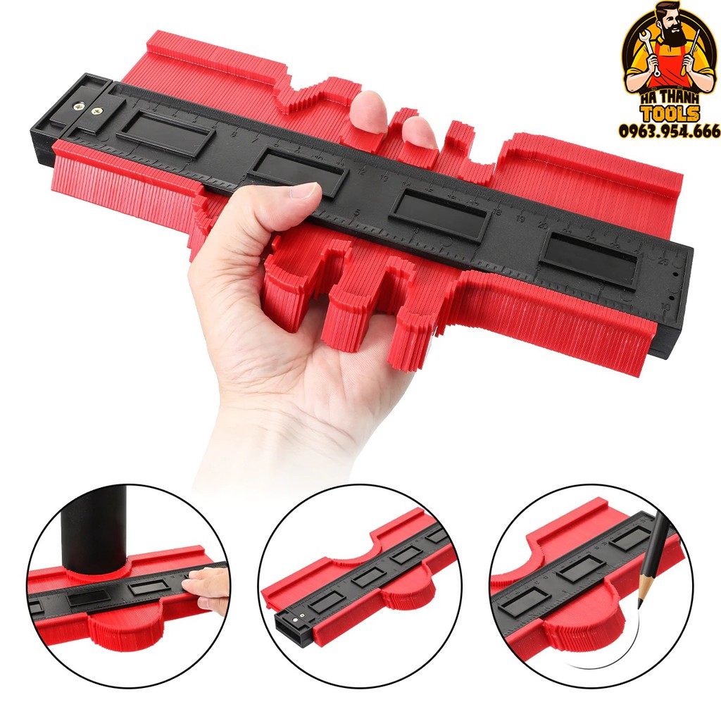 - Thước chép đường viền/ biên dạng sẽ giúp bạn tiết kiệm nhiều thời gian và công sức để đánh dấu việc cắt gạch chính xác, cắt tấm ốp sàn gỗ, hoặc đo các ống quanh co, khung tròn, ống dẫn và nhiều công cụ hữu ích khác.