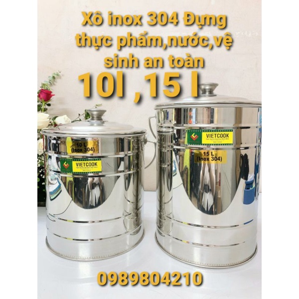XÔ ,BÌNH ĐỰNG NƯỚC,SỮA THỰC PHẨM BẰNG INOX SIZE 10L,15 lHÀNG VN THIẾT KẾ CHẮC CHẮN DÀY DẶN