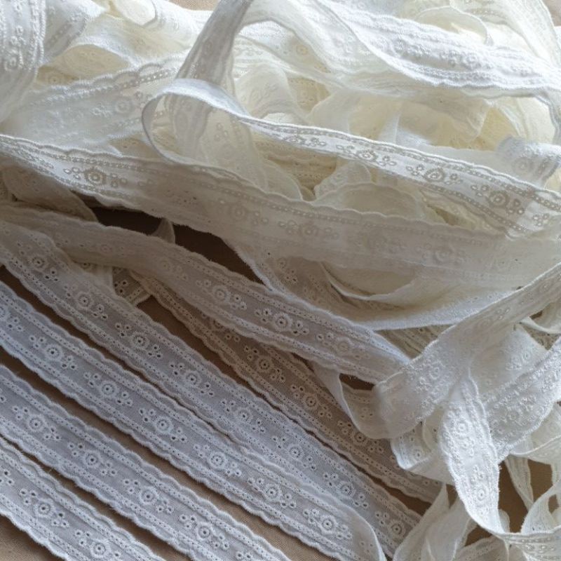 Viền boi thêu, màu trắng kem, chất cotton 100% mềm đẹpỨng dụng trang trí áo váy, handmade....