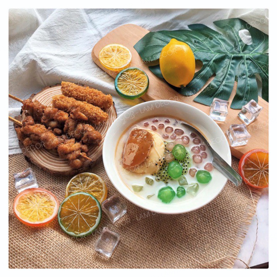 Đá giả đem đến sự thay thế triệt để cho đá thật, có thể kết hợp phụ kiện chụp ảnh đá giả với vài lát chanh nhựa để thêm phần cuốn hút.
