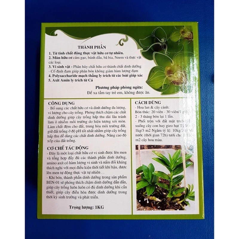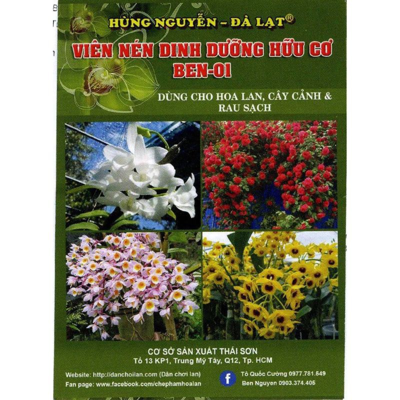 Viên nén dinh dưỡng hữu cơ Ben-01 Hùng Nguyễn chuyên dùng cho hoa lan, cây cảnh và rau sạch. Với thành phần được chiết xuất từ tinh chất động thực vật hữu cơ tự nhiên, viên nén dinh dưỡng hữu cơ Ben-01 Hùng Nguyễn hoàn toàn hữu cơ, rất an toàn cho cây trồng, động vật, thú cưng và người chơi lan, hoa kiểng và người trồng rau sạchQuy cách: Hộp 1kg nhỏ gọn, tiện lợi, tiết kiệm và dễ dàng bảo quản, vận chuyển đi xa.