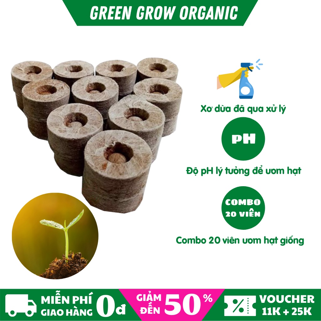 GREEN GROW ORGANICViên nén xơ dừa đã qua xử lý dùng ươm cành, ươm hạt giống rau, giâm cành hoa hồng hiệu quả MS152 GREEN GROW