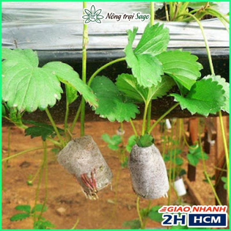 Bước 4: Khi cây đã đủ lớn thì mang ra đất hoặc chậu để trồng. Loại vải bọc xung quanh rất mỏng đủ để rể cây có thể đâm thủng để phát triển ra ngoài.