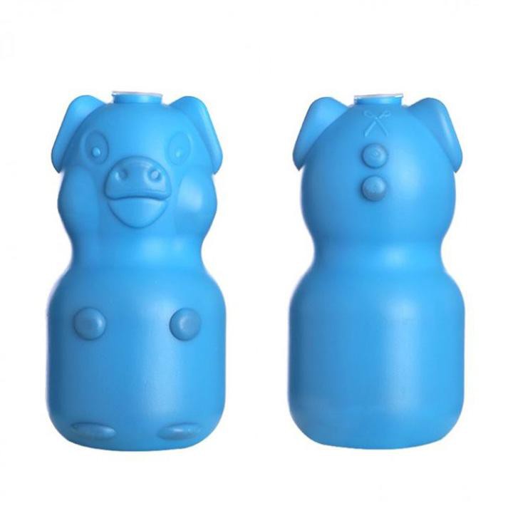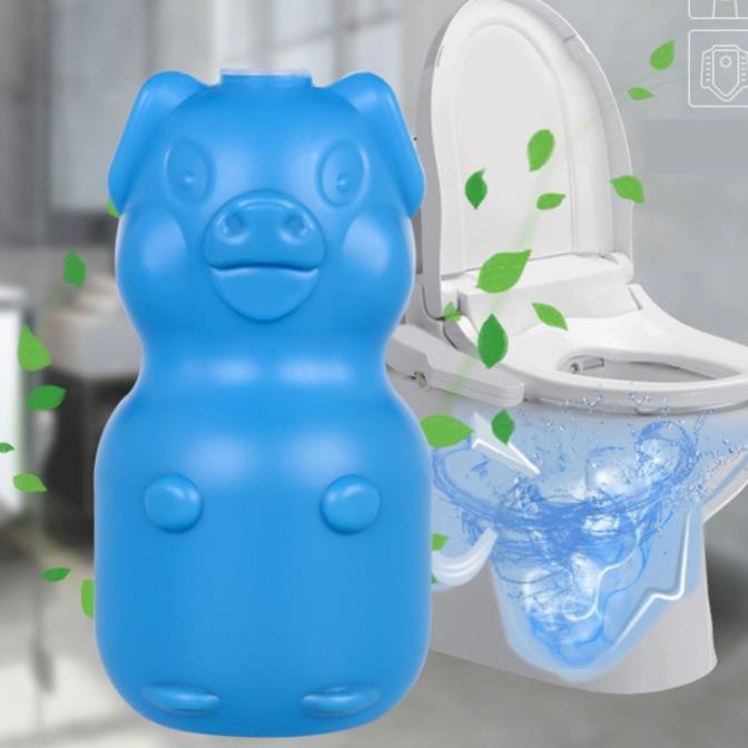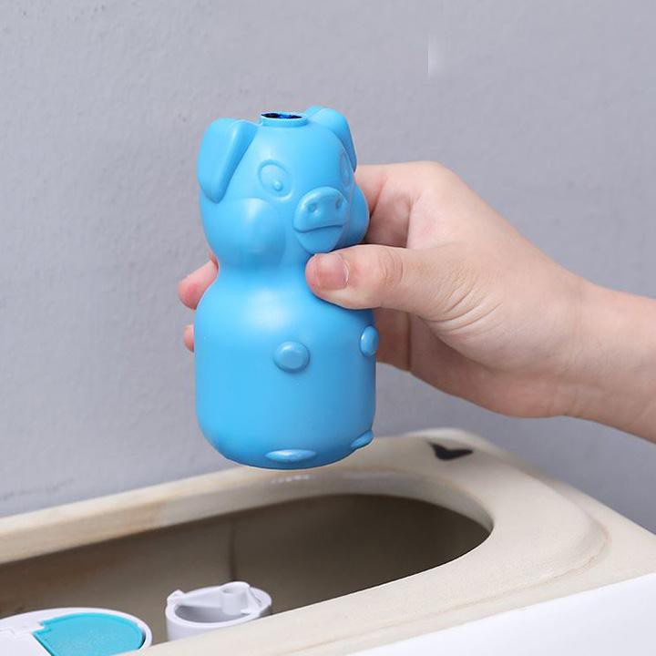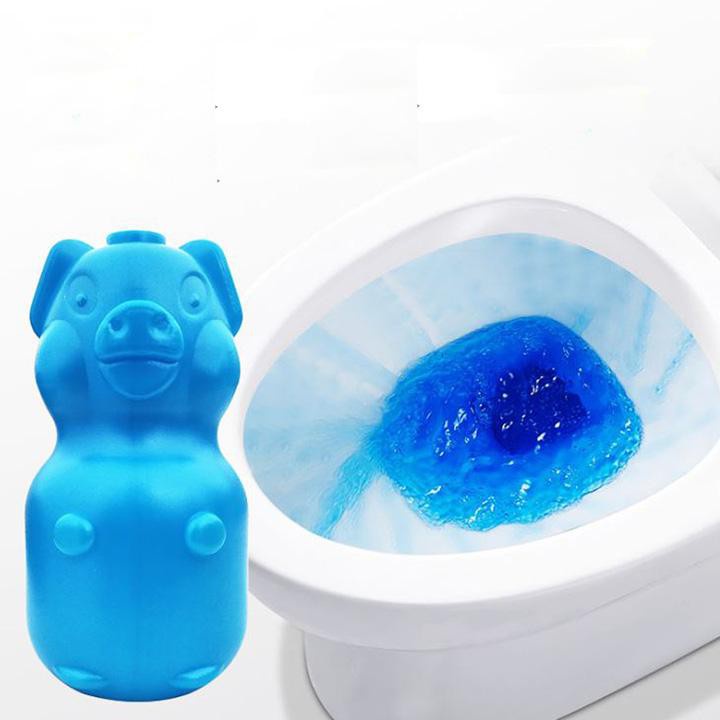 -Viên thả bồn cầu hình con lợn giúp tẩy sạch các mảng bám, giữ toilet luôn sạch sẽ, bóng đẹp đồng thời giúp diệt vi khuẩn, virus, ký sinh trùng... ẩn chứa bên trong bồn cầu.