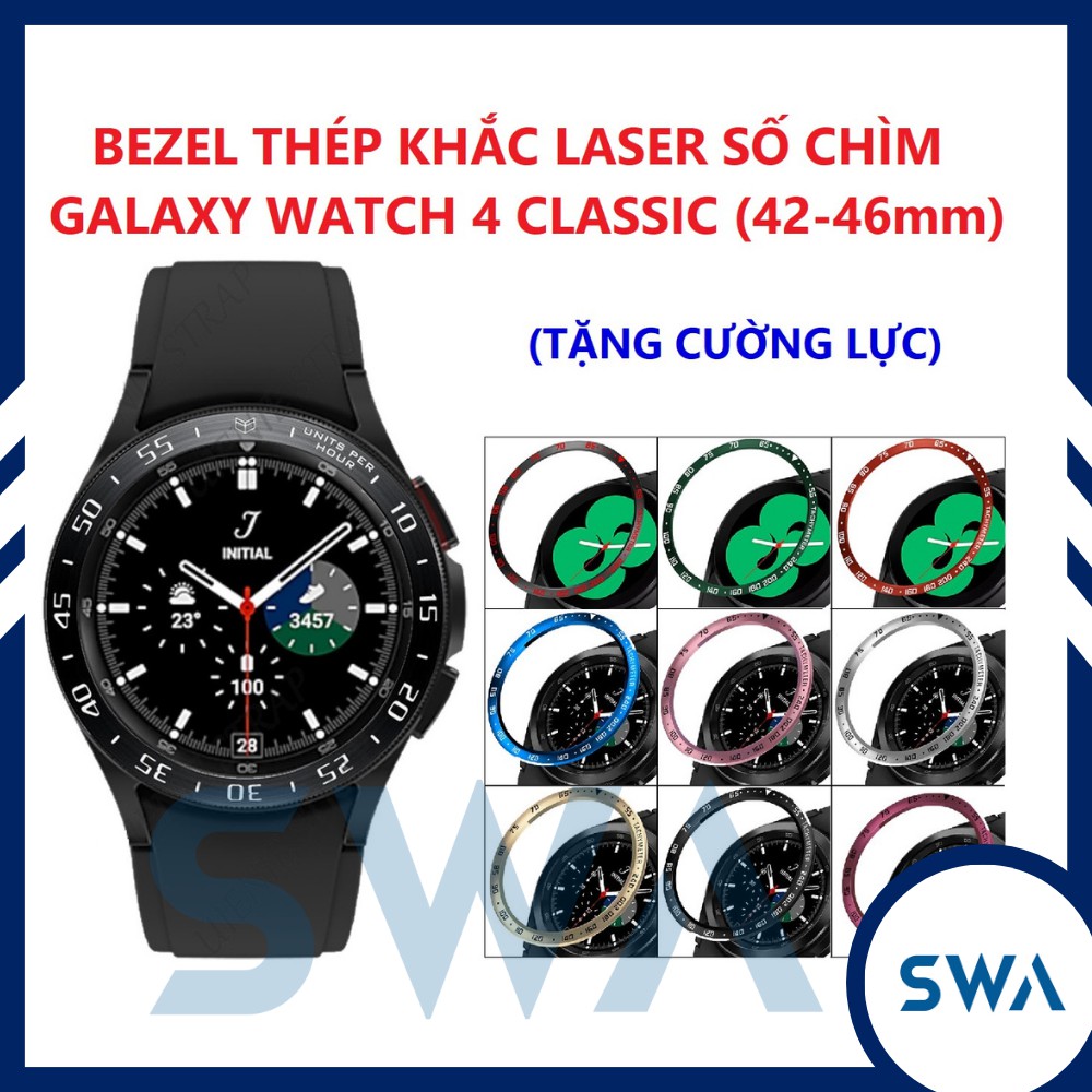 Giới thiệu Viền Thép Bezel Samsung Galaxy Watch 4 Classic 42mm 46mm viền thép khắc chìm, tặng cường lực SWASTORE