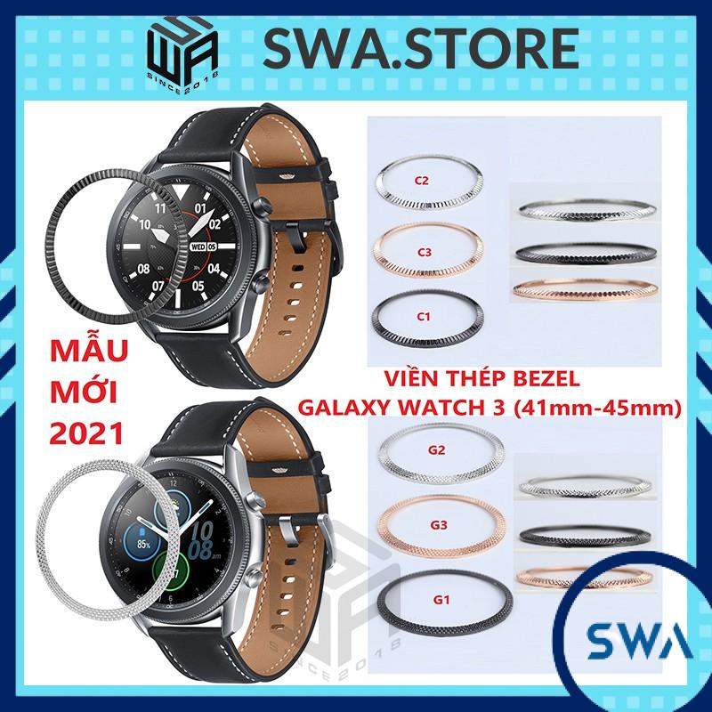 Viền Thép Bezel Samsung Galaxy Watch 3 (41mm và 45mm) viền thép khắc chìm, tặng cường lực SWASTORE