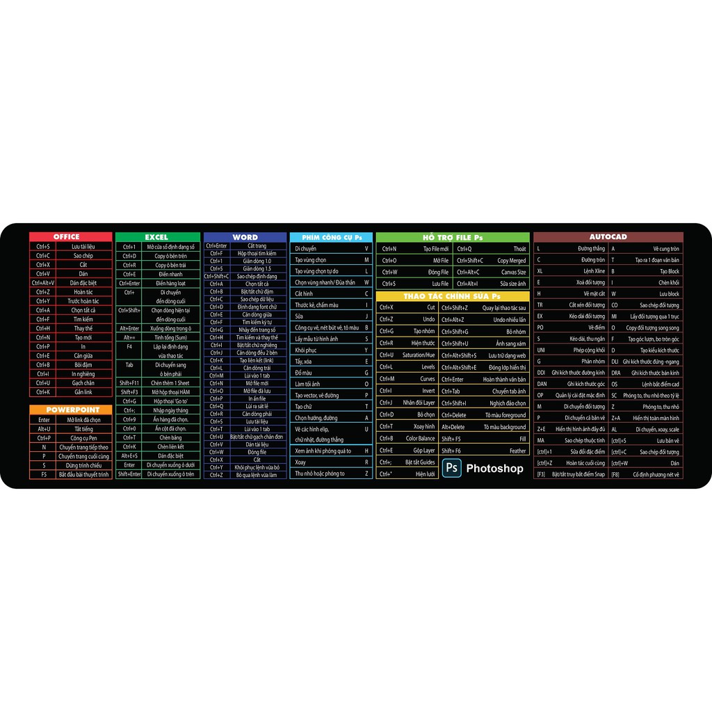 Máy tính & Laptop > Phụ Kiện Máy Tính > Bàn Di Chuột || [Việt Hóa] Lót Chuột Phím Tắt Văn Phòng, Thiết Kế, Cao Su Tự Nhiên, Nhiều Kích ThướcCòn hàng