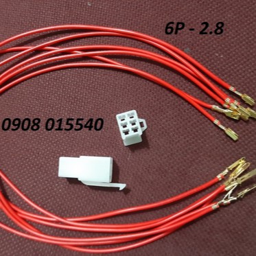 Jack nhựa xe máy 6P bấm dây điện sẵn- Jack nhựa xe máy 6P bấm Cos 2.8mm & dây điện sẵn (15cm)