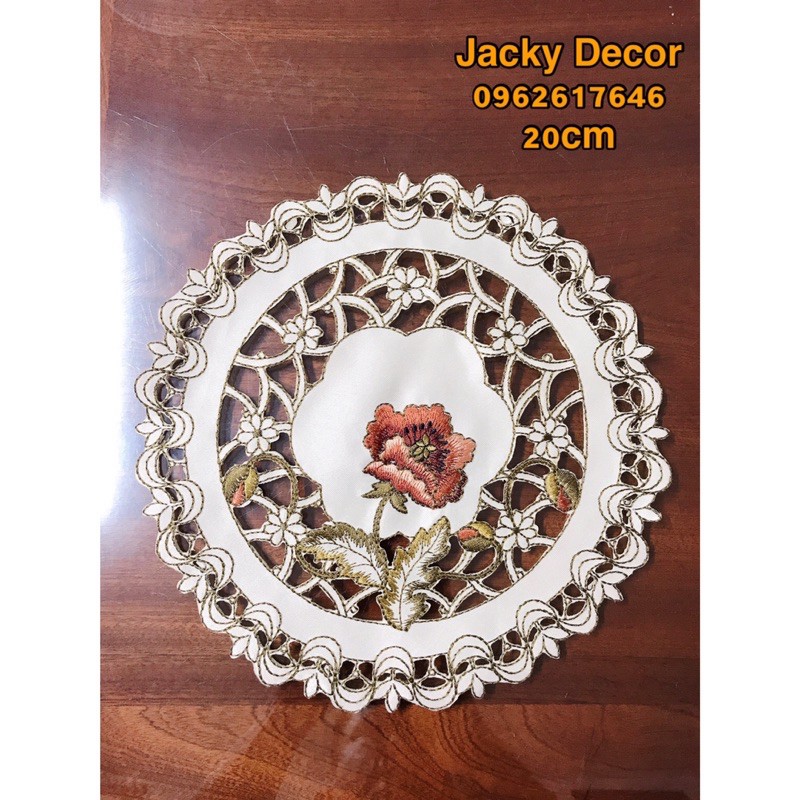 [VINTAGE] Khăn trải bàn TRÒN 20CM THÊU HOA Nhật Bản - HÀNG ĐẸP