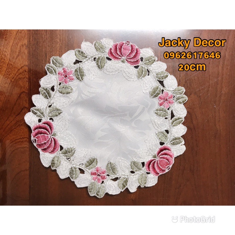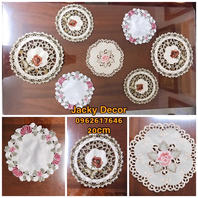 📣 KHĂN TRẢI BÀN TRÒN, LÓT LỌ HOA THÊU HOA NHẬT BẢN 20cm📣👉Chất liệu: Khăn được sản xuất trên dây chuyền hiện đại theo công nghệ Nhật Bản, chất liệu vải cotton thêu hoa văn trang trí, dày dặn.