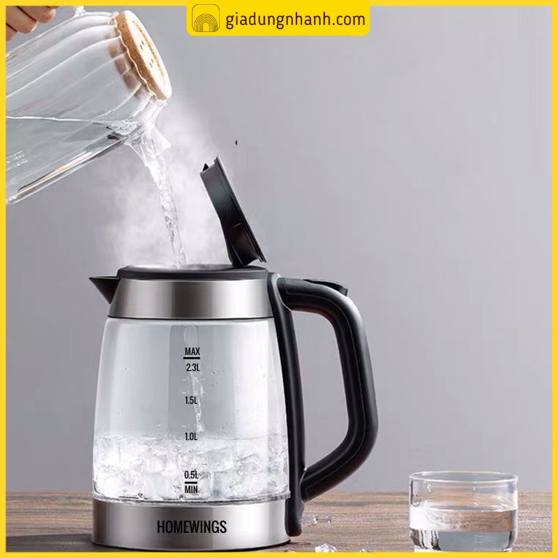[VIP] Ấm Siêu Tốc HOMEWING Thủy Tinh 2,3L, Ấm Điện Đun Nước Cao Cấp 1800W