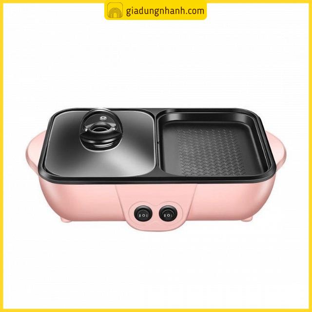 [VIP] Bếp Lẩu Nướng 2 Ngăn, Bếp Lẩu Nướng 2 In 1, Bếp Chiên, Bếp Nướng Điện Đa Năng (Hộp Hồng)