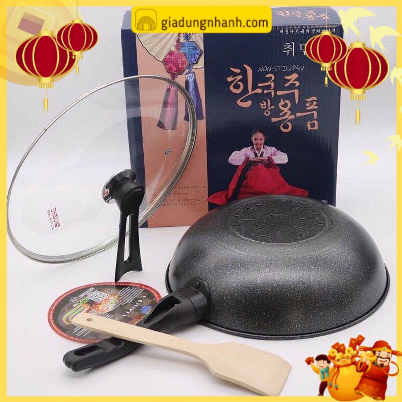 Nhà cửa & Đời sống > Dụng cụ nhà bếp > Chảo || [VIP] Chảo Đá Hàn Quốc Chống Dính Sâu Lòng 32cm, Có Nắp Đậy (Tặng Kèm Thìa Gỗ)Còn hàng