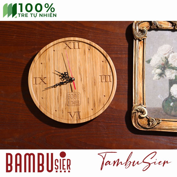 [VIP] Đồng hồ treo tường, để bàn bằng gỗ tre khắc CNC - đồng hồ treo tường cao cấp [GOOD HOMES]